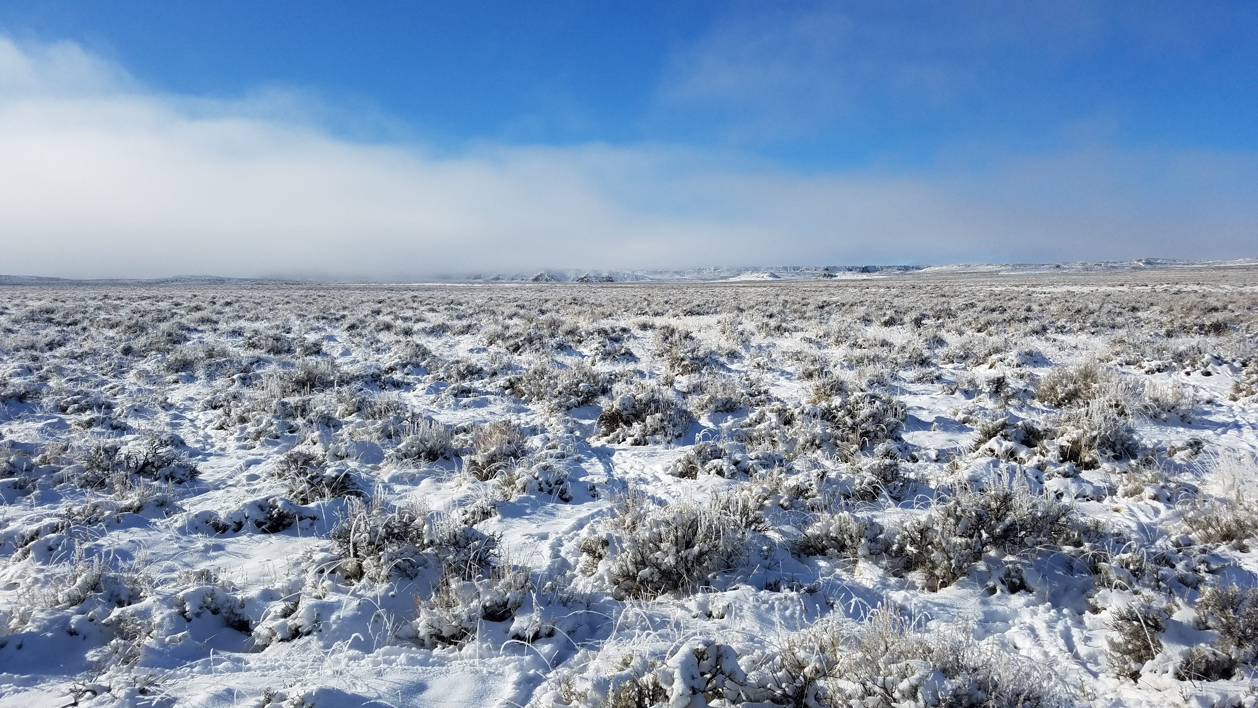 I reimagined the herd kicking up snow as they ran from end to end in a single rewilding movement, not quit thousands, but I let the number slide. This unknown valley is just as special as any Yellowstone or Grand Teton. Greater sage-grouse pile into the valley in the winter in large flocks along with eagles, coyotes, elk and larkspurs. We were looking for just a few grouse for dog to point and prairie falcon to chase.